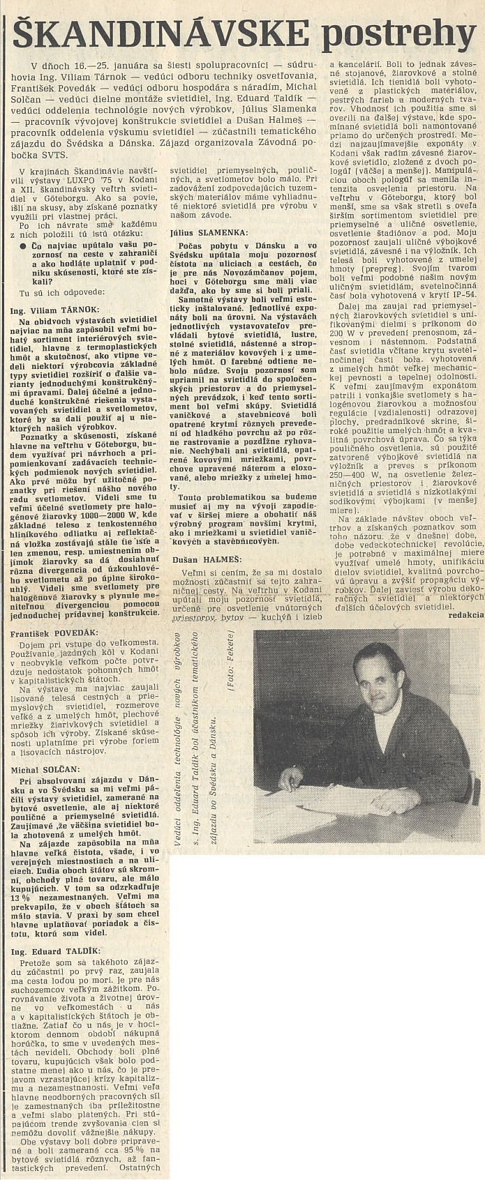 Návšteva pracovníkov Elektrosvitu vo Švédsku a Dánsku 16.-25. januára 1975
