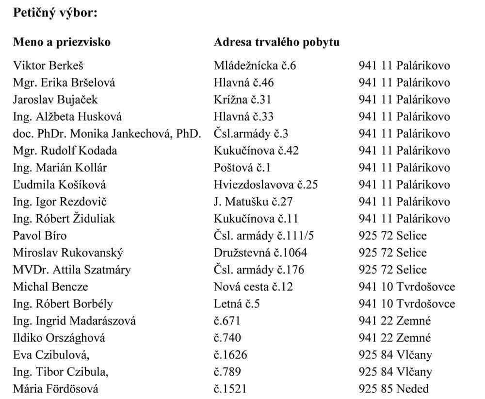My, dolupodpísaní občania, na základe čl. 27 Ústavy SR a zákona č. 85/1990 Zb. o petičnom práve v znení neskorších predpisov, žiadame príslušné štátne (predovšetkým Ministerstvo životného prostredia SR, Slovenská inšpekcia životného prostredia a stavebný úrad) a samosprávne orgány (dotknuté obce),