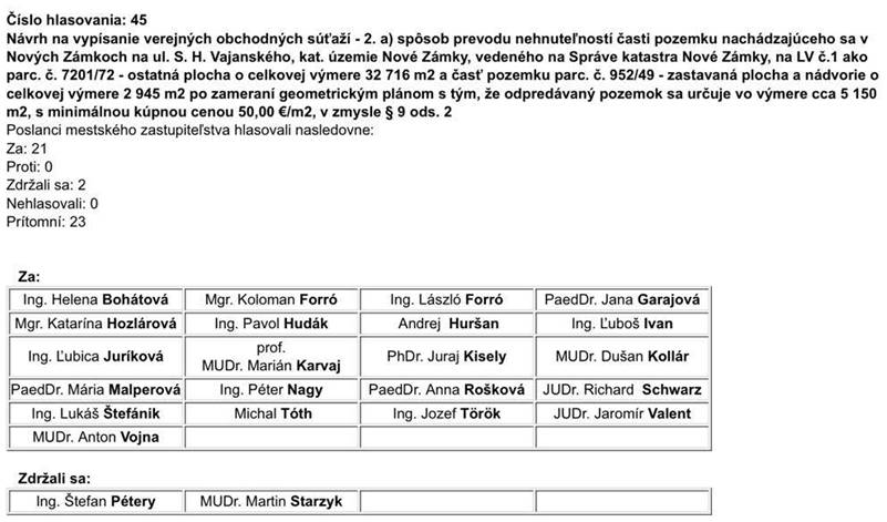 Niektorí z poslancov ktorí predaj mestského pozemku a tým výstavbu nákupného centra odsúhlasili sa teraz pokúšajú dostať do zastupiteľstva VÚC Nitre. Ak nedokázali v prípade predaja zelenej plochy na SHV vnímať, pochopiť a odhadnúť potreby lokality a Mesta, ako chcú vnímať potreby kraja ktorý je niekoľkonásobne väčší a komplikovanejší? Možno v prípade hlasovania o predaji mestského pozemku na ulici S. H. Vajanského hovoriť o jednaní vo verejnom záujme? Len aby sa na to nepozabudlo, keď sa už aj kolauduje aj volí takmer súčasne.