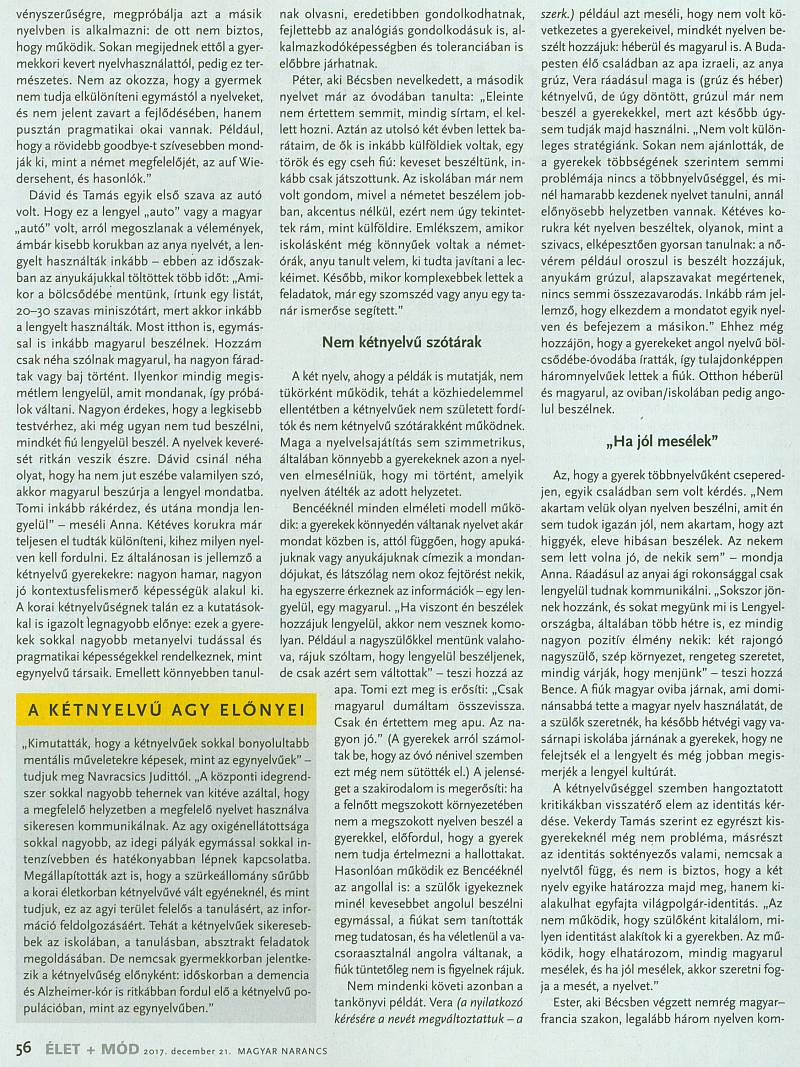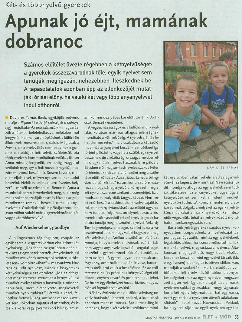 Apunak jó éjt, mamának dobranoc... Cikk a kétnyelvűségről [2018-01-14; 4,025 x]