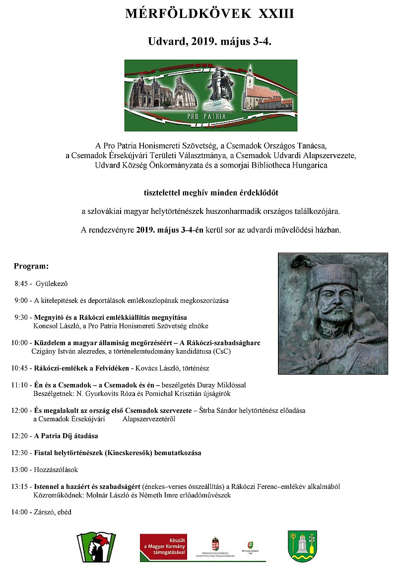 Az idén is megrendezik Udvardon a helytörténészek országos találkozóját. Immár 23-szor találkoznak a szakma elkötelezett művelői, hogy számot adjanak az elvégzett munkáról és ismertessék az elért eredményeket. Az ez-évi rendezvény a Rákóczi-szabadságharc, a Csemadok-évforduló és a fiatal helytörténész generáció bemutatására fog összpontosítani. A szervezők szeretettel várnak minden érdeklődőt!