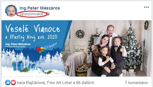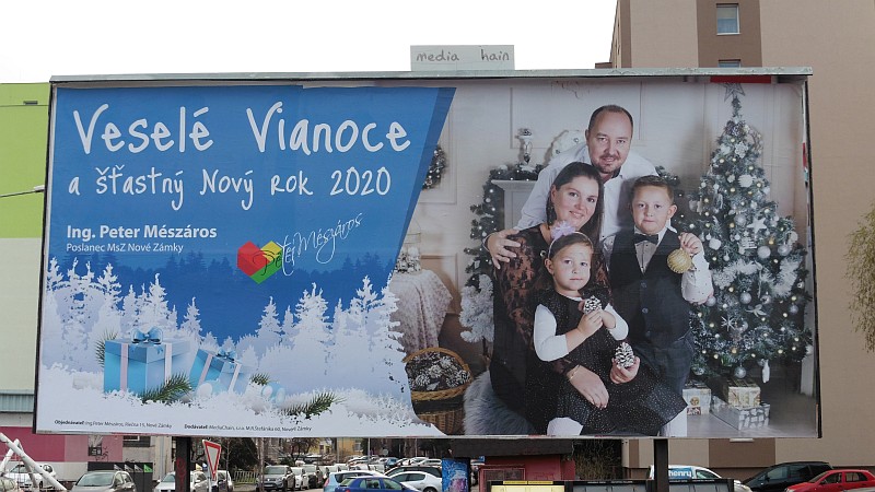 Veselé Vianoce a šťastný Nový rok 2020 vám na niekoľkých billboardoch a v platenej reklame na sociálnej sieti želá Ing. Peter Mészáros, poslanec mestského zastupiteľstva. Na billboardoch je šťastná mladá rodinka s vianočným stromčekom i darčekmi, ktoré musel Ježisko tentokrát priniesť trochu skôr, aby stihol fototermín.
