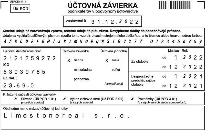 P: Vo verejnej listine v Registri účtovných závierok je uvedené, že firma LimestoneReal...