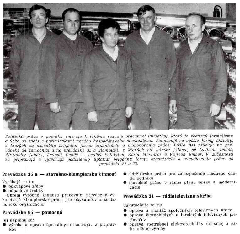 Na začiatku sedemdesiatych rokov sa podnik ďalej profiloval ako výrobca i poskytovateľ komunálnych služieb. Do výroby boli zaradené nové výrobky, medzi nimi ponorné čerpadlo H-85, lamela spojky, mechanická spojka s prítlačným kotúčom, zrážniky MO-50, tlakové nádrže a rozšírená rada reštauračnej linky NZ-3. Na úseku služieb podnik montoval a opravoval spoločné televízne antény, budoval pouličné plynové rozvody, vykonával záručné i pozáručné opravy farebných televízorov, servis výťahov a rozširoval sieť zberní v okrese. Nový areál závodu pre opravy a služby bol odovzdaný do užívania v roku 1973. V poslednom roku piatej päťročnice sa začala výroba plynového kotla Bengál-25 a technickí pracovníci vyvinuli aj prototyp autoprívesu AP-220 a servírovacieho stolíka Univerzál.