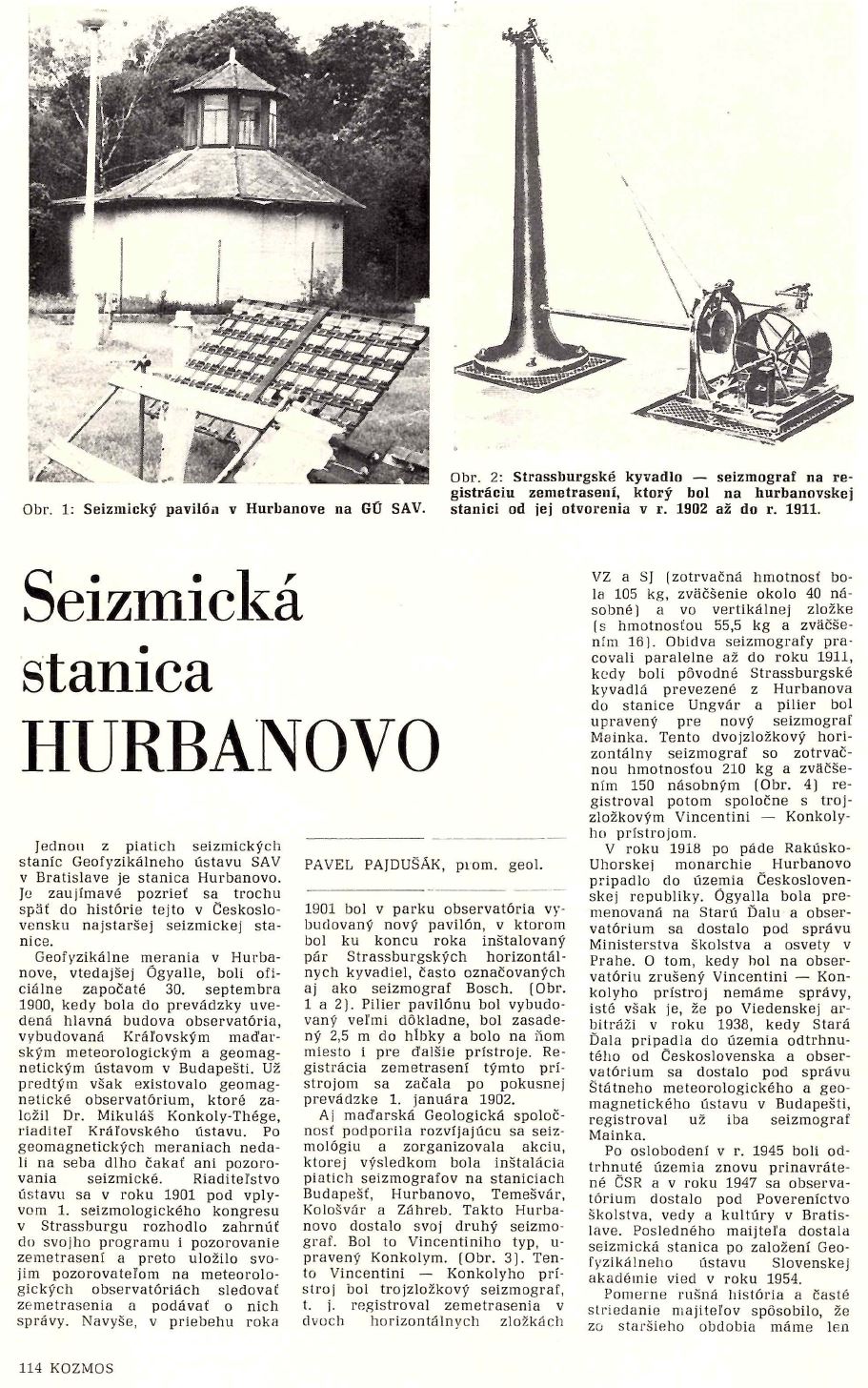 Z histórie hurbanovskej hvezdárne. Seizmická stanica Hurbanovo