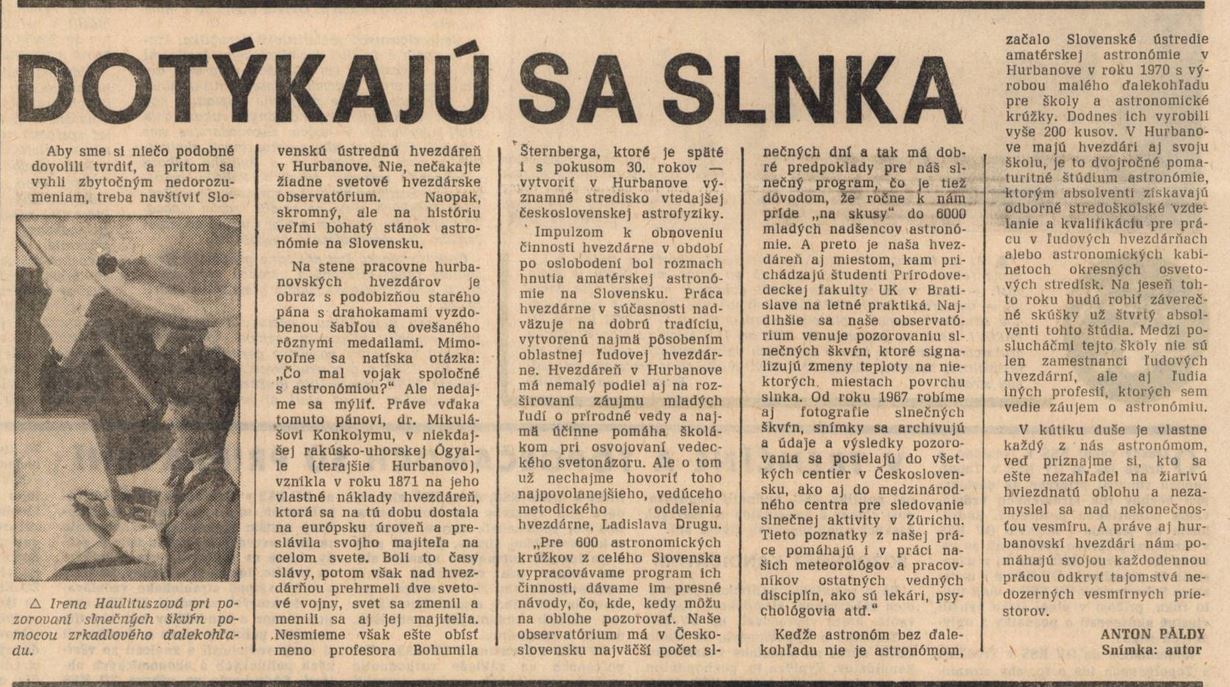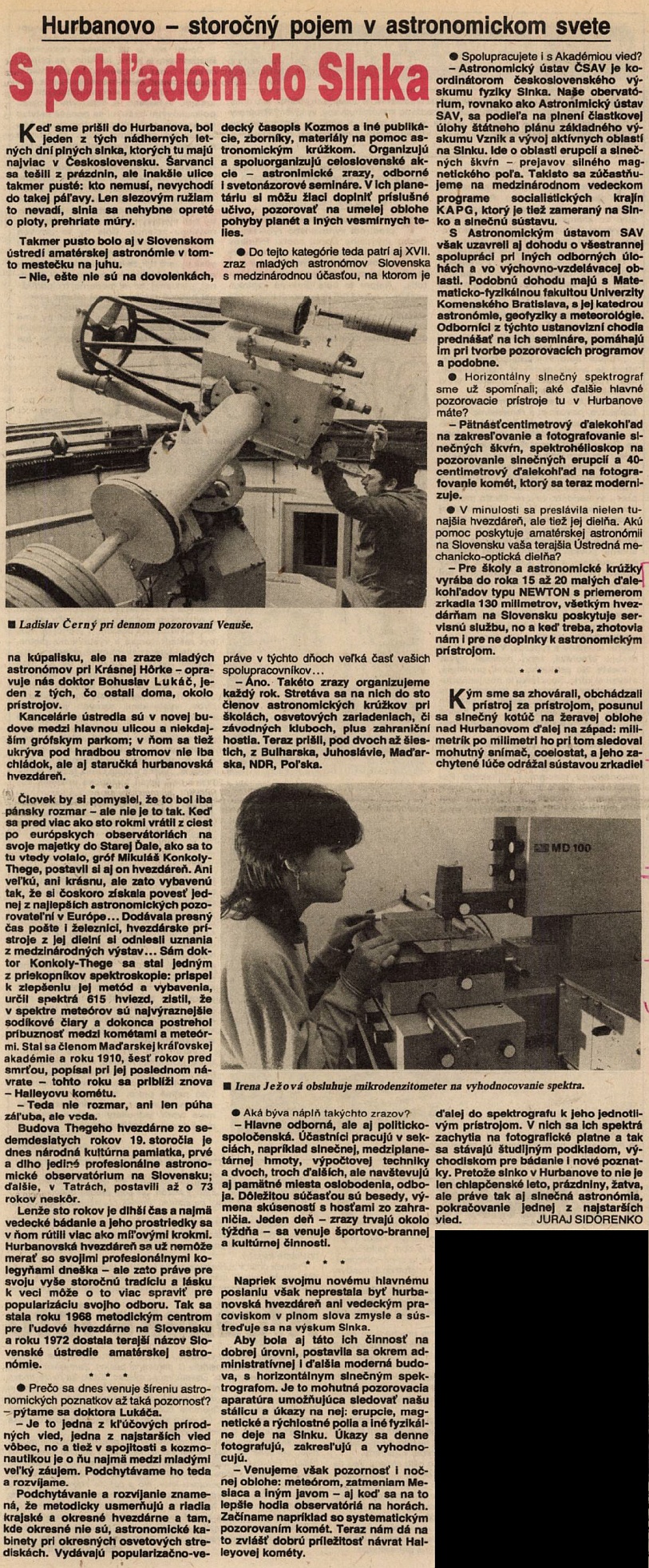 | 45 | 1985.08.17 | Práca: S pohľadom do Slnka. Hurbanovo - storočný pojem v astronomickom svete doc |
