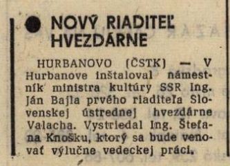 | 36 | 1969.04.05 | Hlas ľudu: Nový riaditeľ hvezdárne. Valach vystriedal Štefana Knošku. doc |