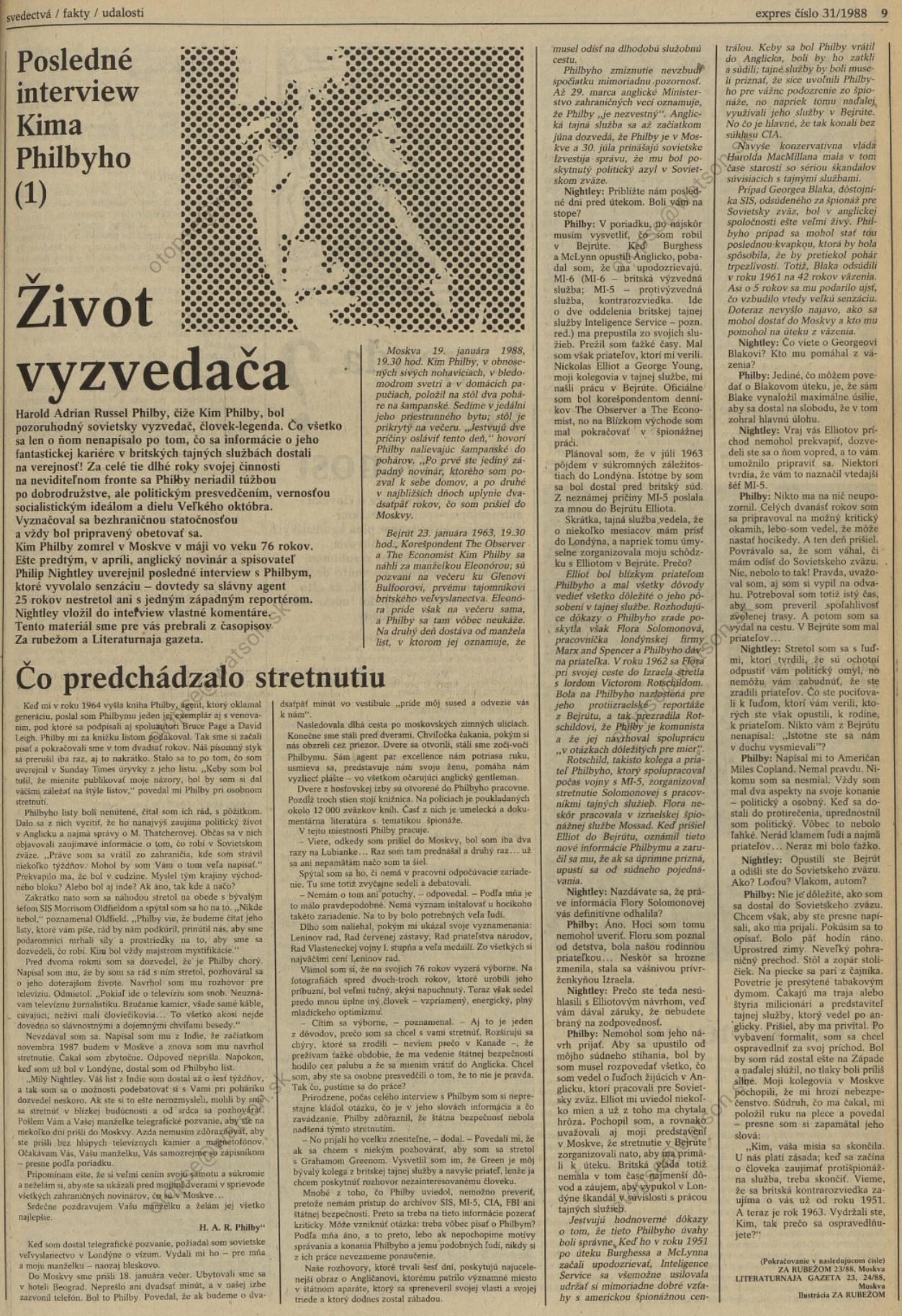 | 52 | 1988.08.06 | Expres: Posledné interview Kima Philbyho doc1 doc2 |