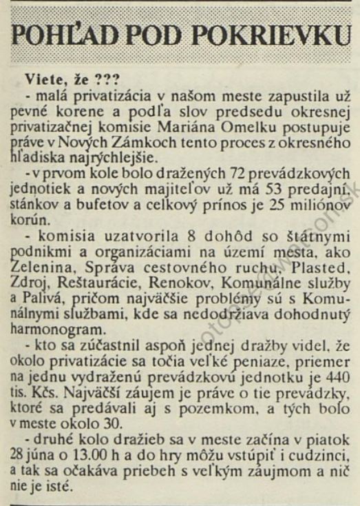 Castrum Novum: Pohľad pod pokrievku. Malá privatizácia v našom meste