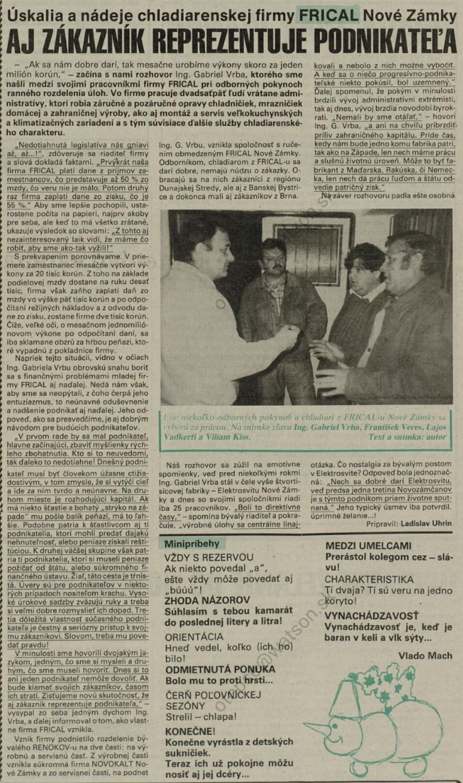 Naše novosti: Aj zákazník reprezentuje podnikateľa. Úskalia a nádeje chladiarenskej firmy Frical Nové Zámky.