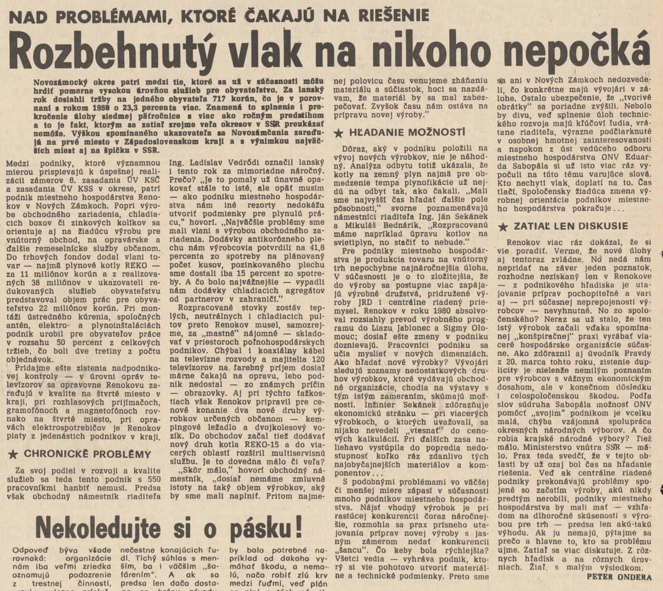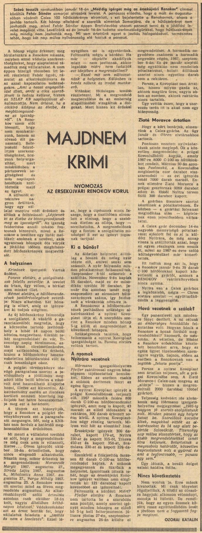 Új Szó: Majdnem krimi. Nyomozás az érsekújvári Renokov körül