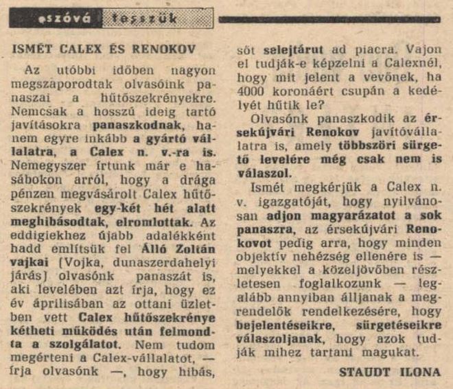 Új Szó: Szóvá tesszük: Ismét Calex és Renokov