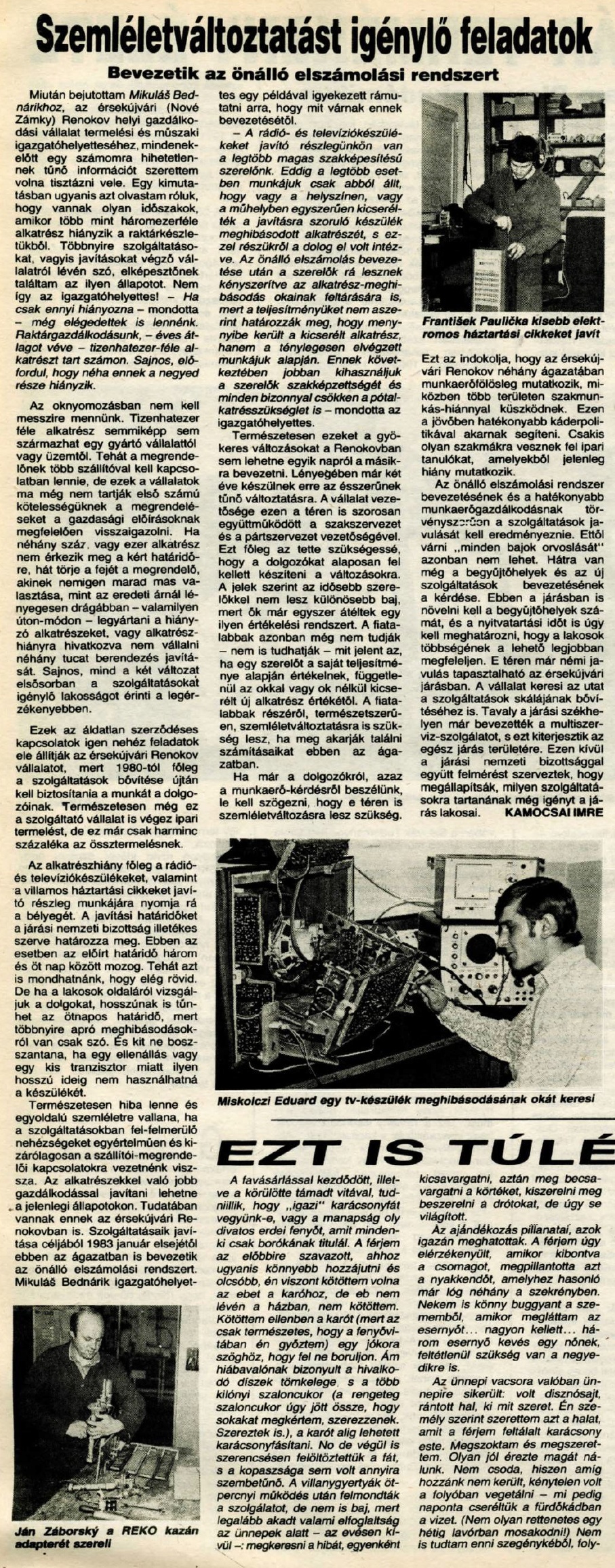 ÚJ Szó: Szemléletváltozást igénylö feladatok. Bevezetik az önálló elszámolási rendszert