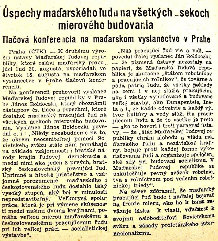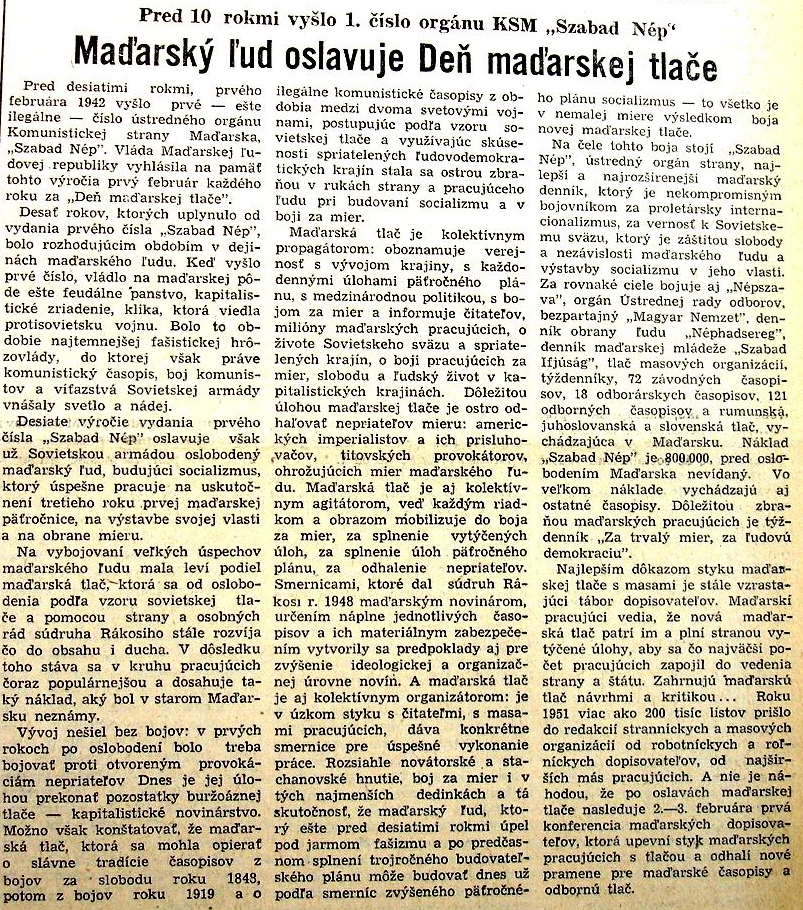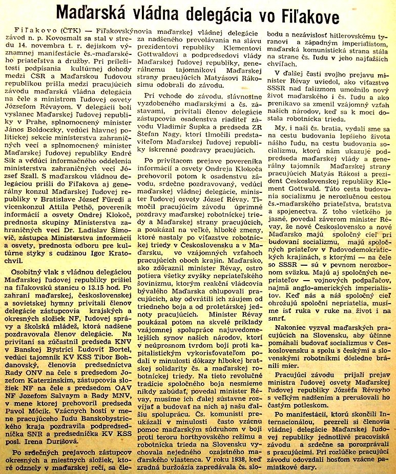 | 1127 | 1969.03.02 | Szőke József írása a Hét című hetilapban a Matica slovenská nemzetiségi jogok korlátozására irányuló törekvéseiről Popély Árpád, 1968 és a csehszlovákiai magyarság Dok. 85 |