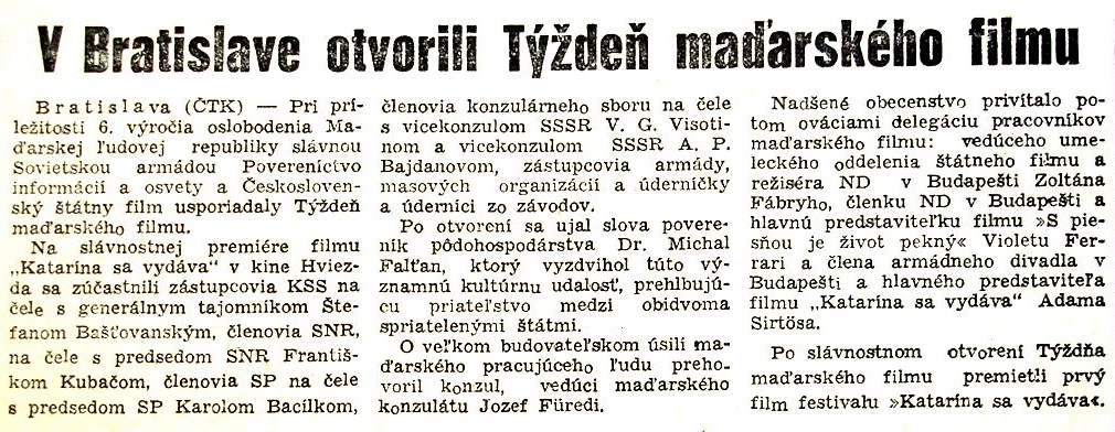 | 1158 | 1969.11.05 | Az Új Szó tudósítása a Magyar Területi Színház újonnan létrehozott kassai részlegének, a Thália Színház november 3-i bemutatkozó sajtóértekezletéről Popély Árpád, 1968 és a csehszlovákiai magyarság Dok. 108 |