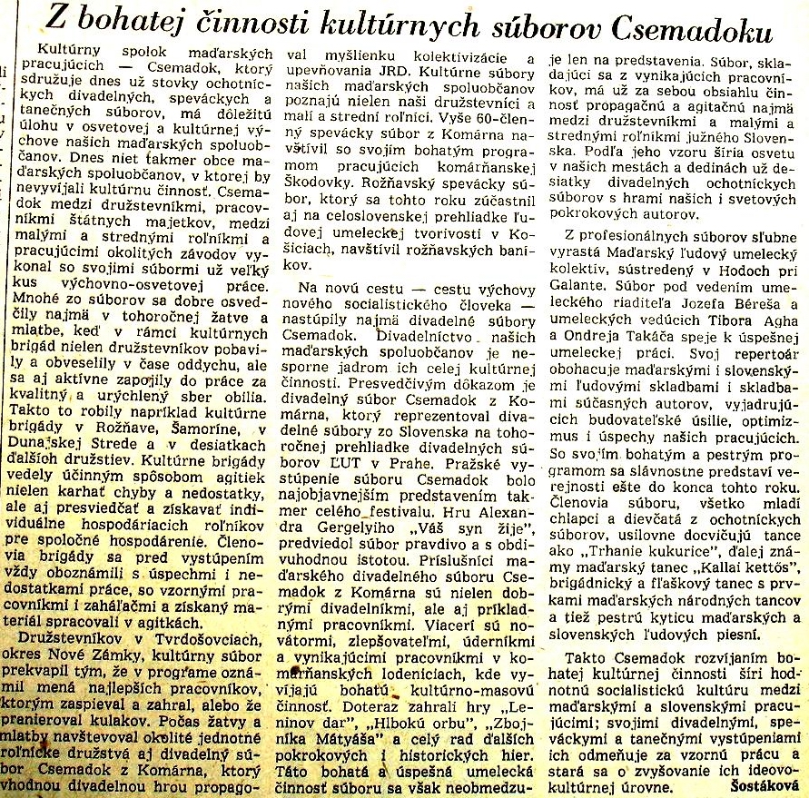 | 1198 | 1974.??.?? | Kiss József: Értünk harcoltak (A dél-szlovákiai munkásmozgalom haladó hagyományaiból) Varga János (összeáll.): A Csemadok 25 éve 1949-1974, Madách Bratislava 1974 doc1 |