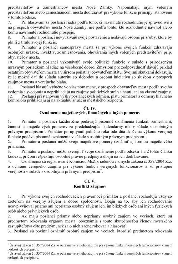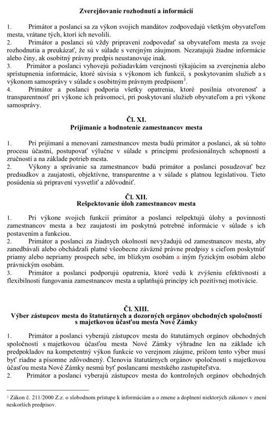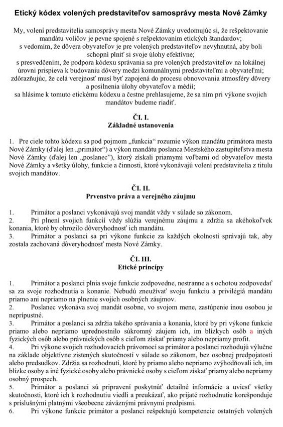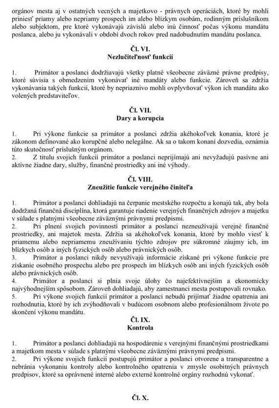Na najbližšie zasadnutie zastupiteľstva pripravila reformná skupina poslancov návrh etického kódexu, pri vypracovaní ktorého sa inšpirovala mestami ako sú Nitra či Trnava, ktoré sa snažia zabrániť rozkrádaniu majetku poslancami samosprávy. U nás sa táto iniciatíva zrejme minie účinkom podobne, ako keď sólistka skupiny BoneyM počas prvého vystúpenia v Moskve vyzývala nomenklatúrne kádre sediace v kreslách kremeľského paláca zjazdov vstať a začať tancovať... "Ste na zlej adrese" hundrali si činovníci v raných 1980-tych rokoch a nie inak budú reagovať aj pp. Valent, Štefánik, Török, Rošková a spol. pre ktorých je parazitovanie na Meste takpovediac tradíciou...