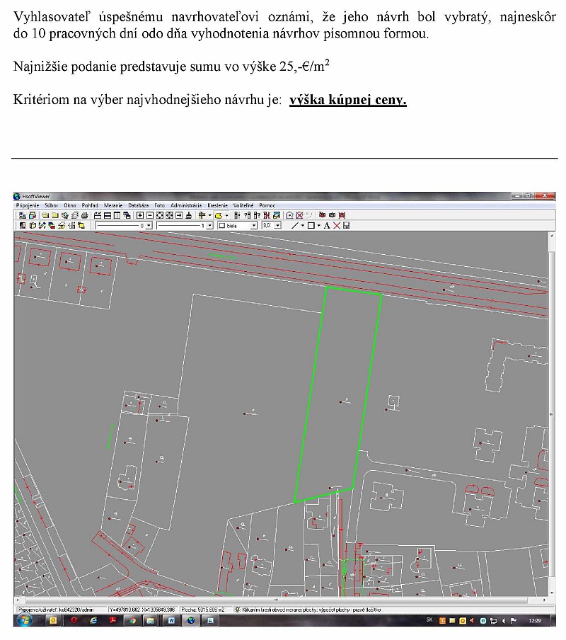 Ja tu mám na katastri teraz otvorený celý pozemok 1918/1. Je to pod jedným číslom a je tu presne zakreslené, že o ktorý pozemok sa jedná, ktorý žiadal ten investor. Takže na základe tohto bude vypísaná verejná obchodná súťaž a verím tomu, že keď sú aj iní záujemcovia, tak sa o to pobijú a pre mesto sa vysúťaží čo najlepšia cena, aby sme aj takto pokryli kapitálové príjmy, ktoré vieme, že je polrok a nemáme pokryté ani v polovičnej čiaske. Návrh dávam písomne.