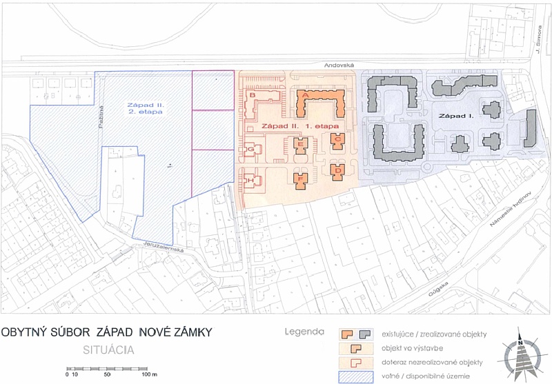 Toto je návrh, ktorý si dovolím povedať, že tú základnú úlohu, ktorú sme si dali, že pokračovať vo výstavbe, začať s novým charakterom nazvem to zaujímavého bývania, kde tí obyvatelia budú mať to svoje súkromie, budú mať svoj park, o ktorý sa môžu starať, budú mať zabezpečené parkovanie, budú mať vlastné kontajnerisko, je niečo, čo sme chceli dosiahnuť. Čo sa týka úloh mesta v tomto projekte, navrhujeme, aby mesto vybudovalo prístup, hlavnú prístupov komunikáciu z tej Andovskej ulici a verejné osvetlenie, pričom všetky ostatné náklady na tvorenie infraštruktúry by bolo v režii toho víťaza. Úprestným navrhujeme vyhlásiť tri obchodno-verejné súťaže.