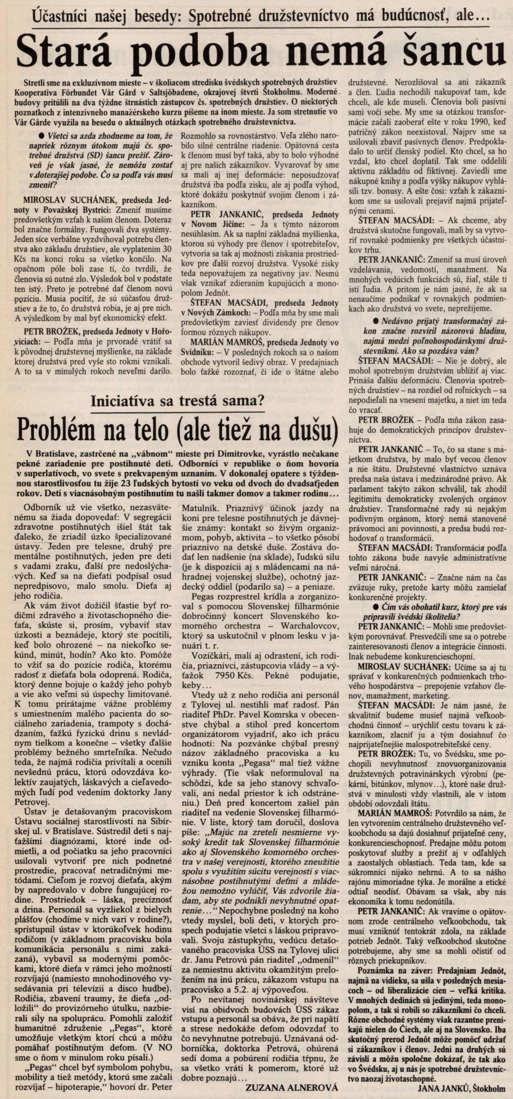 1992.02.12 | Národná obroda: Účastníci našej besedy: Spotrebné družstevníctvo má budúcnosť, ale... Stará podoba nemá šancu Článok |
