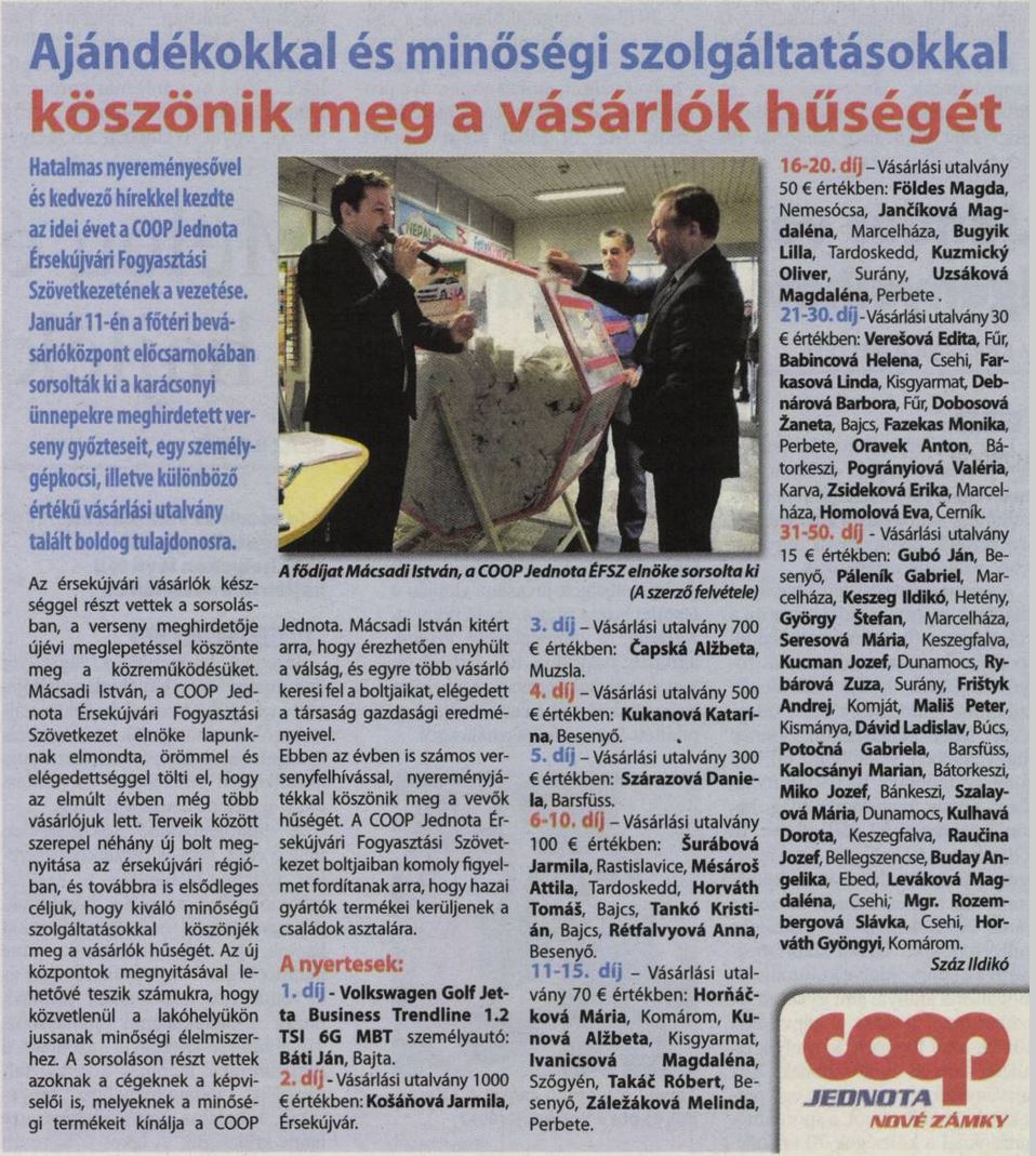 2016.01.13 | Új Szó: Ajándékokkal és minőségi szolgáltatásokkal köszönik meg a vásárlók hűségét doc |