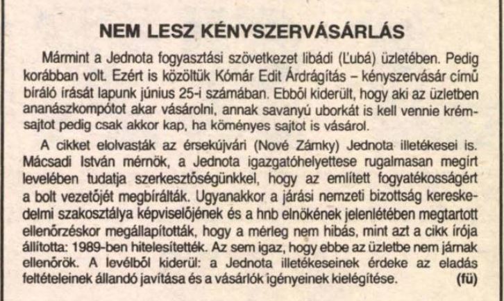 1989.08.13 | Vasárnap: Nem lesz kényszervásárlás Článok |