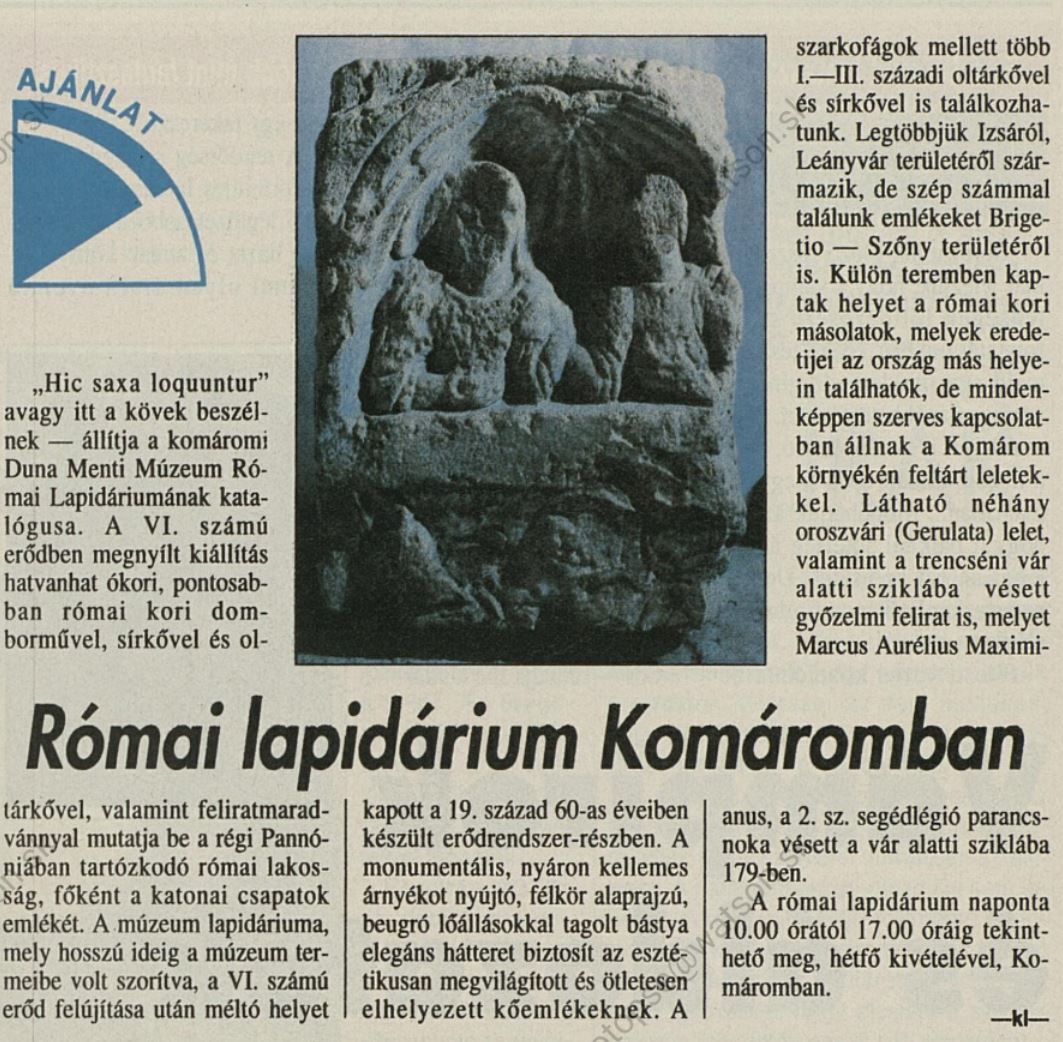 1993.09.13 | Nap: Római lapidárium Komáromban Cikk |