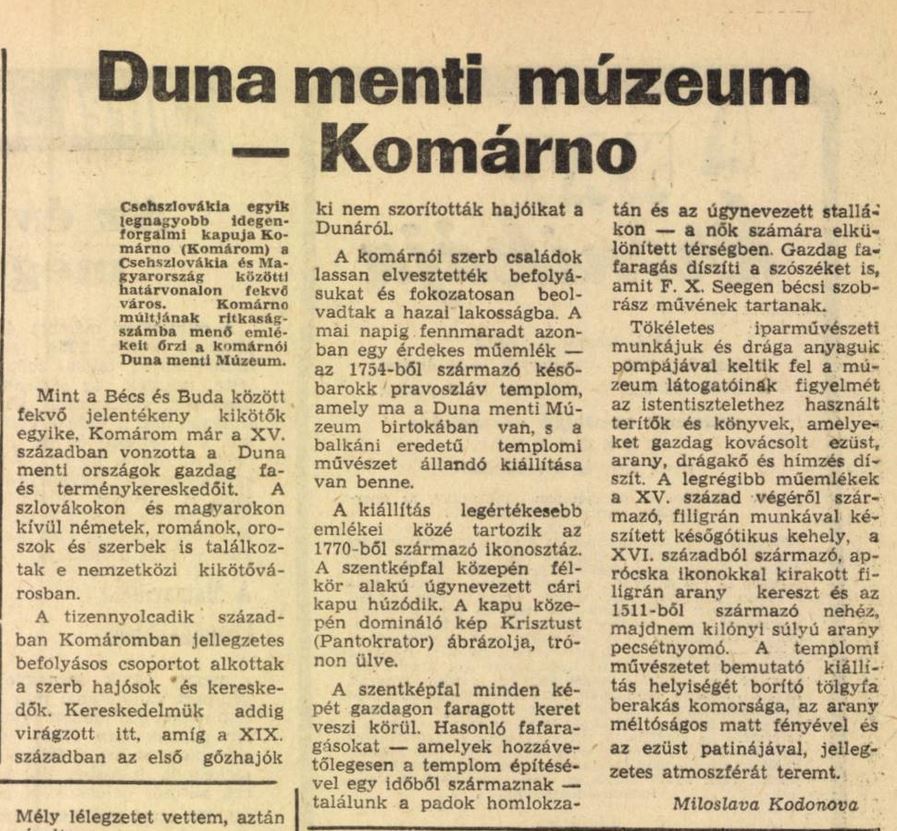 1978.01.03 | Népujág: Duna menti múzeum — Komárno Cikk |