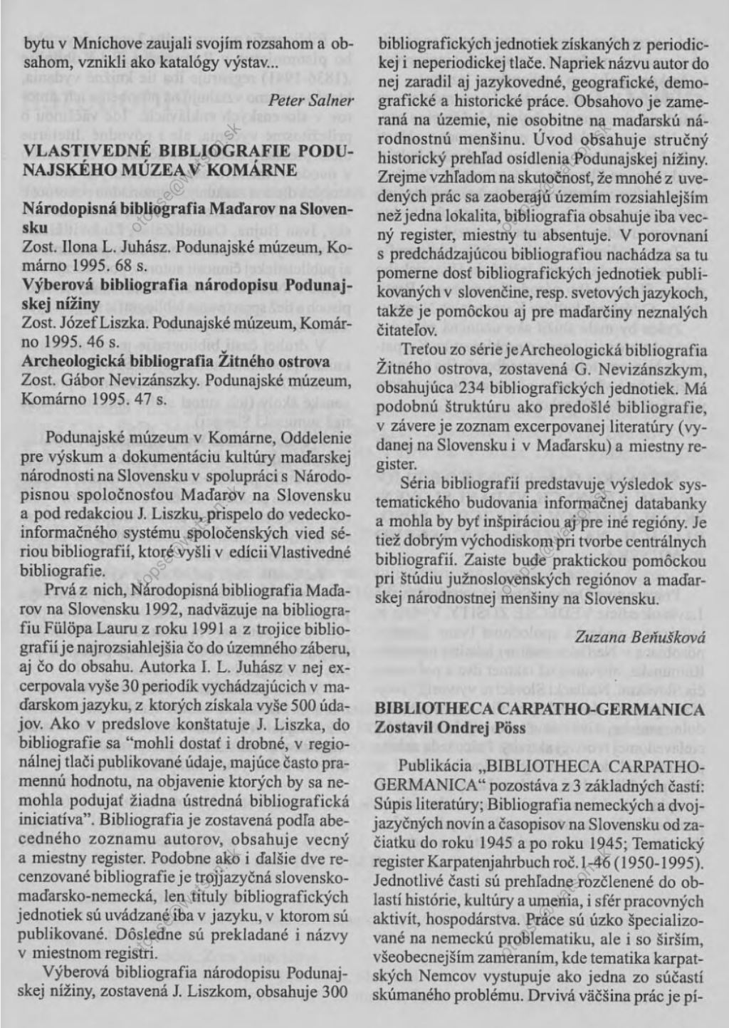 1996.01.01 | Slovenský národopis: Vlastivedné bibliografie Podunajského múzea v Komárne Článok |