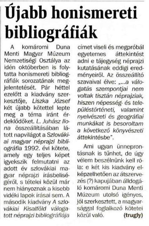 1995.12.12 | Új Szó: Újabb honismereti bibliográfiák Cikk |