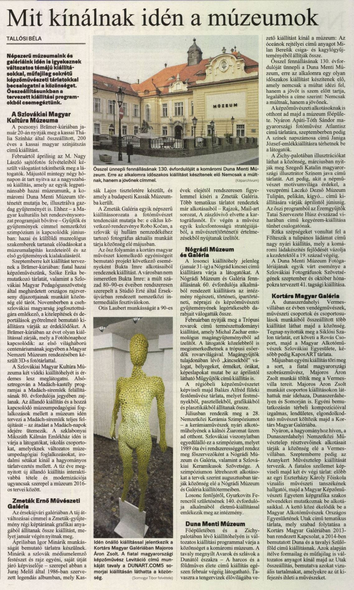 2016.01.16 | Új Szó: Mit kínálnak idén a múzeumok Cikk |
