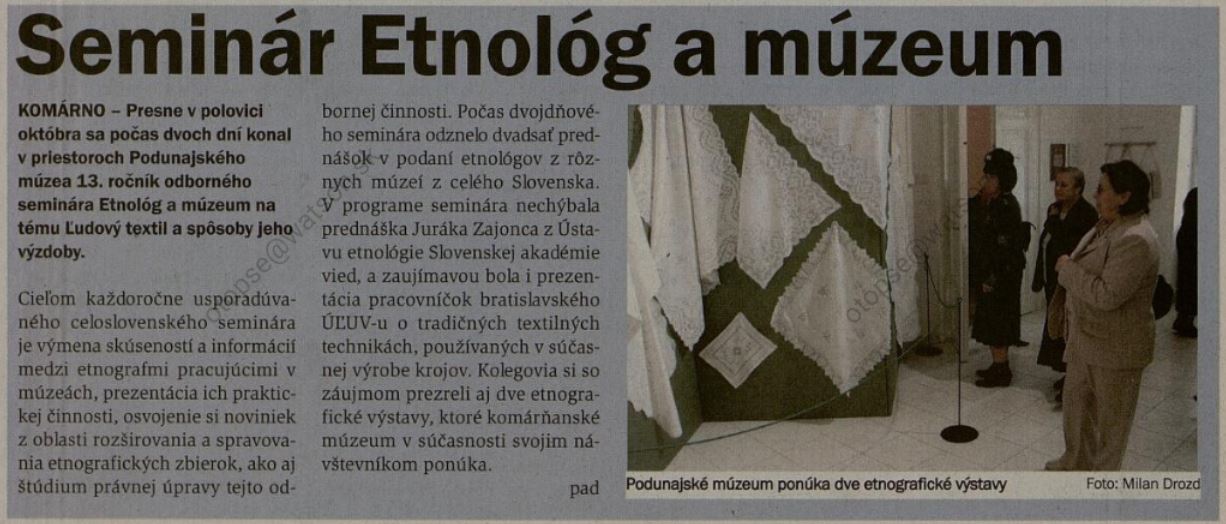 2009.10.27 | Žitný ostrov: Seminár Etnológ a múzeum Článok |