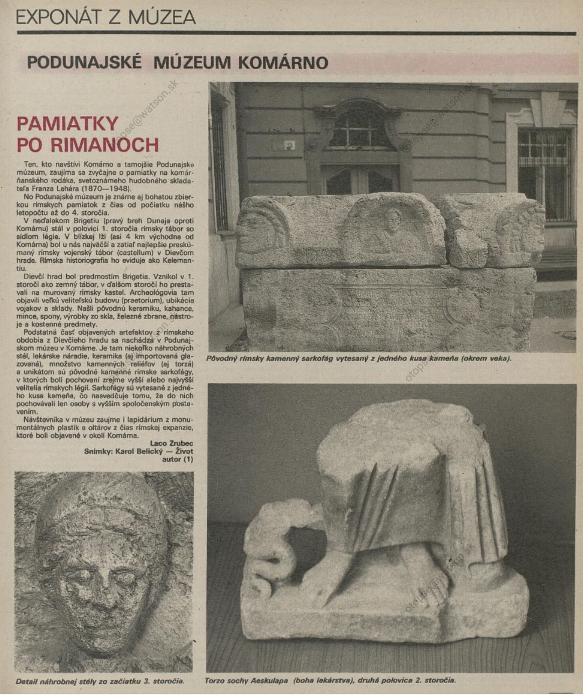 1989.09.07 | Život: Podunajské múzeum v Komárne. Pamiatky po Rimanoch Článok |