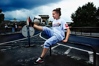 -Úgy hallotam, hogy nagy nevü ismert futballcsillagokat is elkápráztatad tudományoddal, vagy azzal hogy egy lány is képes ilyen bravurosan báni a focilabdával?