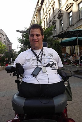 - Elképesztő dolog amikor manapság villalakók, botrányhősök kerülnek címlapokra miközben itt vannak a mindennapi hösök mint Te, akik nap mint nap helytállásból csillagosra vizsgázik... Hogyan tudsz megküzdeni olyan dolgokkal, ahol szükség lenne legalább a kezekre... Hogy csak egy dolgot említsek - megtanultál írni a száddal, önállóan enni-inni, mindezek mellett úszol, focizol, és otthon pingpongozol - ez hihetetlen... Mesélnél nekünk egy két trükkről, mit hogyan tudsz megoldani?