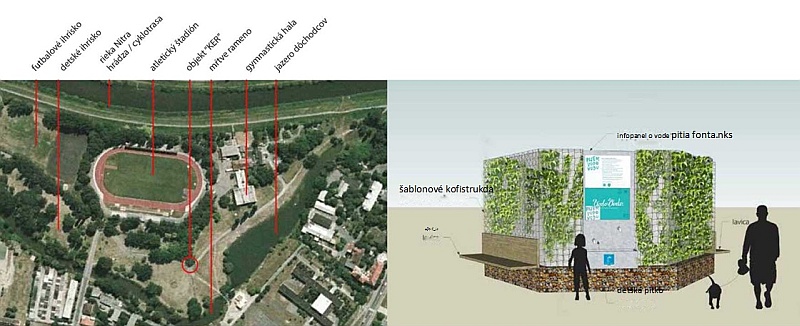 Projekt „OBJEKT KER" - hlavnou myšlienkou je pretvorenie chátrajúceho (totožného/identického) objektu na piciu fontánku s možnosťou oplachu rúk. Vodu chceme získať navŕtaním studne vedľa objektu. Filtráciou chceme zmeniť úžitkovú vodu na pitnú. Vnútro objektu by plnilo funkciu technickej miestnosti pre vodárničku a technológiu na filtráciu vody. Technická miestnosť by bola verejnosti neprístupná. K picej fontáne by mali ľudia prístup z vonkajšej strany. Na umiestnenie picej fontány by sa využilo existujúce okno. Ostatné dve by slúžili na umiestnenie informačných tabúľ, ktoré by opisovali spôsob získavania a premenu úžitkovej vody na pitnú a informovali o podpore projektu.