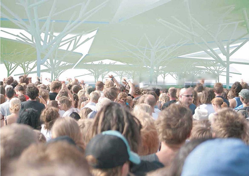 Zhluk týchto "stromov"vytvára jedinečný priestorový zážitok, vyslovuje asociácie s okolitým parkom so zeleňou a zároveň vytvára prestrešenie trhoviska, ktoré má potenciál udržať v meste trhovnícku tradíciu.