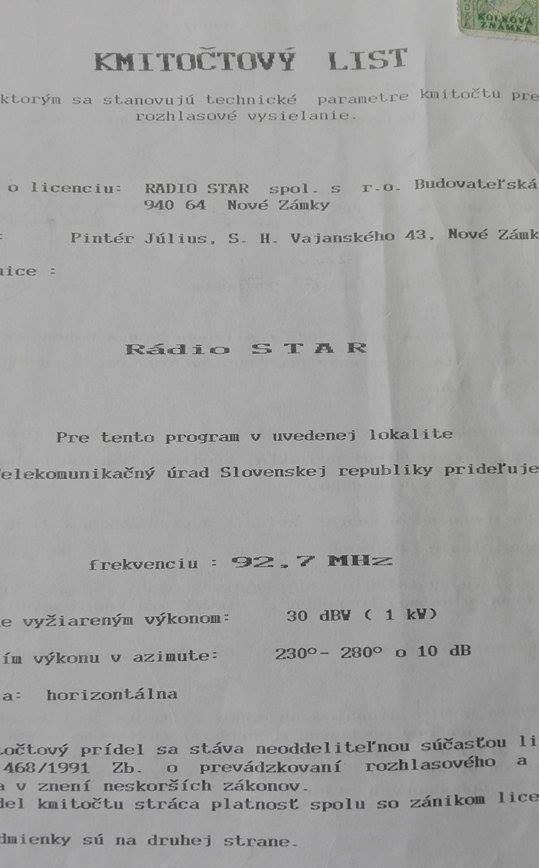 Az idén immár 20 éve annak, hogy 1995 tavaszán egy új adó kezdett el sugározni - az érsekújvári Radio Star. A történet csupán másfél évig tartott, mégis nyomot hagyott az érsekújvári lakosok emlékezetében. Igyekszünk vissza forgatni az idő kerekét és a kezdetektől a megszűnésig végig kisérjük a Star Radio útját, ezzel is emléket állítva azoknak, akik vállakoztak rá, mert nem hitték el, hogy nem lehet...